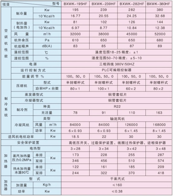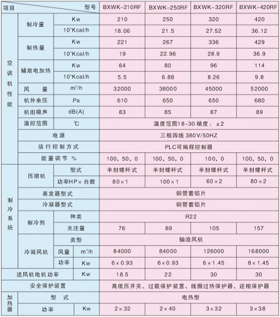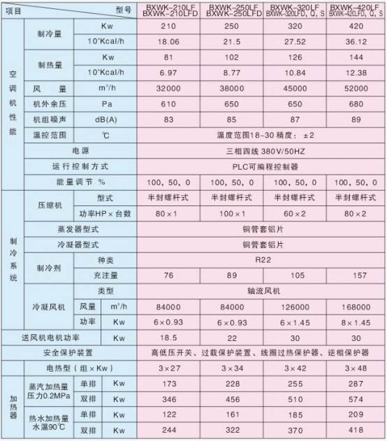 4.该系列空调机标准型共有4大类、44种型号,用户根据实际需要进行选择。也可根据用户提供的有关参数进行特别设计。