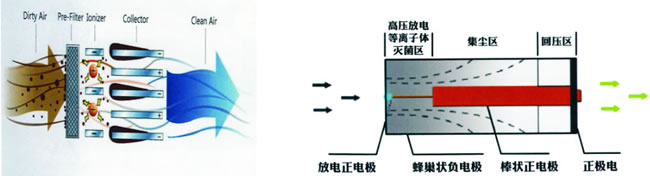 | ◆ 负极采用等六边形结构,集尘面积比率大,没有工作死区;正极采用铜管加不锈钢针结构,其放电针尖端进行光学磨圆,在高压电场作用下放电,使灰尘带上正电,同时产生高浓度的等离子体,破坏细菌电解质,杀死细菌; | |