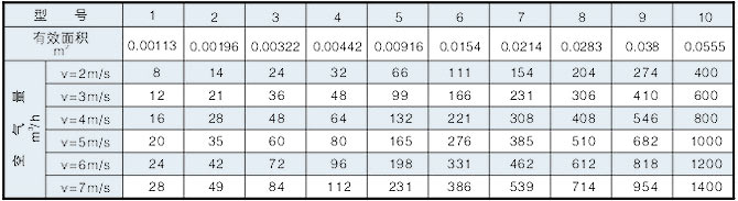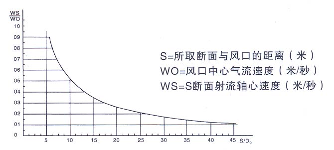 球形可调风口共有10种规格,可根据所需风量大小进行选用,风口局部阻力系数ξ=1.2.射流轴心速变化见曲线图一。风口在不同风速下的风量见表一。